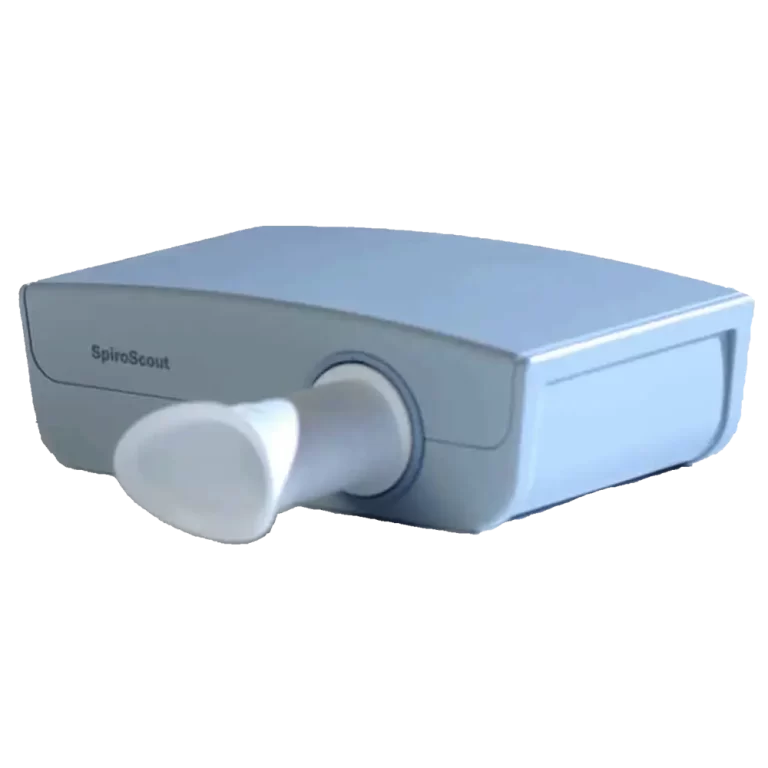 SpiroScout SP incorpora un sensor de flujo ultrasónico para medir el flujo de aire que entra y sale de los pulmones del paciente. La tecnología de ultrasonidos elimina los problemas asociados a los métodos tradicionales de medición de flujo: no hay piezas móviles, ni filtros que cambiar, ni placas para recoger esputos, ni piezas desechables que calibrar.