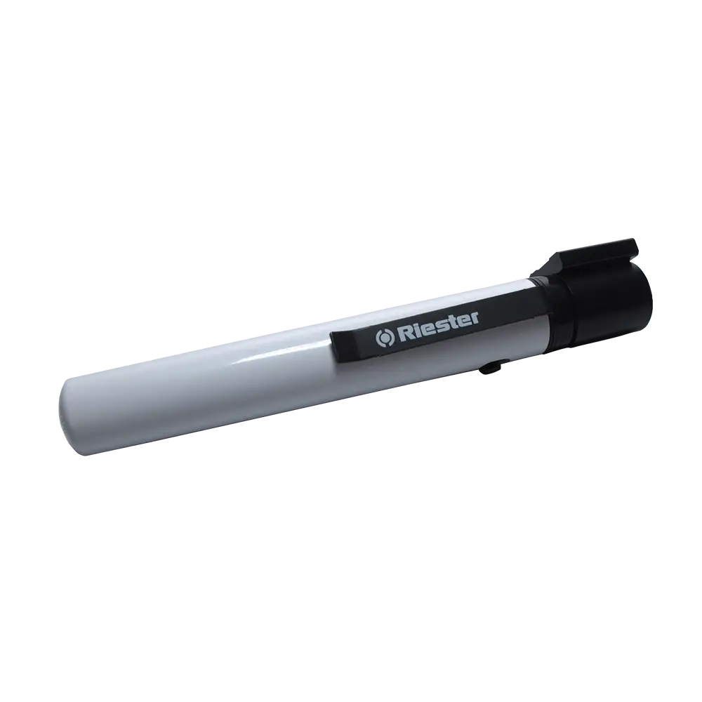 - Carcasa de plástico ABS con pinza metálica, desinfectable.